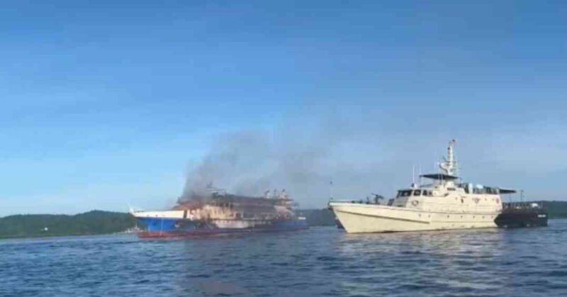 Dianssulut.com — Kehebohan melanda perairan Pulau Talise, Sulawesi Utara, Minggu (20/7) pagi. Kapal Motor (KM) Barcelona V yang tengah berlayar dari Talaud menuju Manado dilanda kebakaran hebat. Lantamal VIII Manado langsung merespon cepat dengan mengerahkan seluruh sumber daya untuk melakukan operasi pencarian dan penyelamatan (SAR) terhadap penumpang dan awak kapal yang panik.