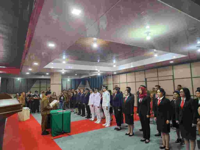 Dianssulut.com — Pemerintah Kabupaten Minahasa Utara (Minut) menggelar rolling jabatan eselon III dan IV di lantai 3 Kantor Bupati Minut pada Senin, 22 September 2025. Pelantikan ini dipimpin oleh Bupati Minahasa Utara, Joune JE Ganda, yang diwakili oleh Sekretaris Daerah Ir. Novly Wowiling, M.Si, berdasarkan Surat Keputusan Bupati Minahasa Utara nomor: 821/BKPSDM/IX/2025.